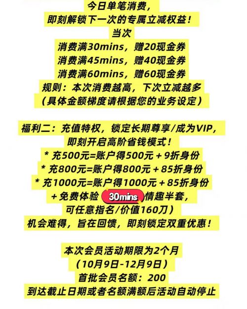 本次会员活动期限为2个月(10月9日-12月9日)